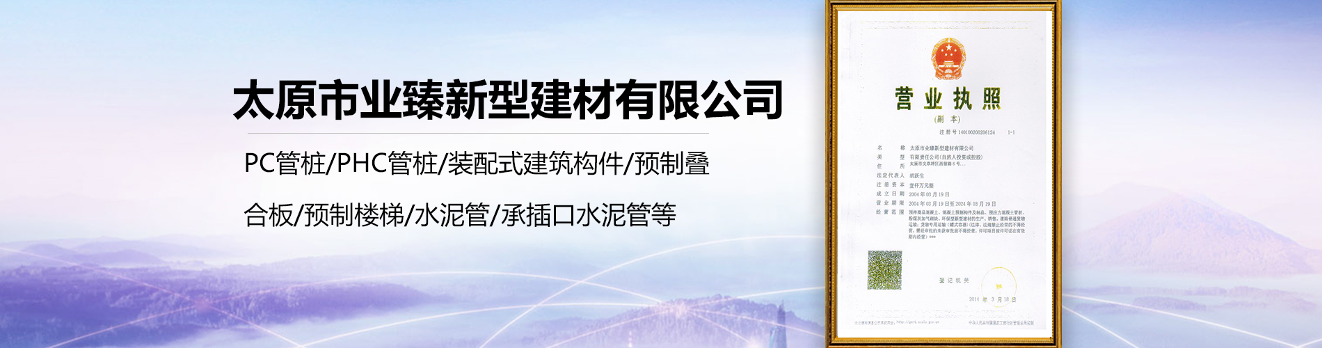 太原市業臻新型建材有限公司是山西省生產高強度預應力混凝土管樁的大型企業。公司緊臨108國道與太原市西北環高速公路,交通便利,輻射深遠。公司擁有完善的質保體系與生產工藝及裝備,科學嚴謹的管理模式和銷售服務。公司坐落在太原市尖草坪區綠果路8號,公司占地面積120.....【了解更多】